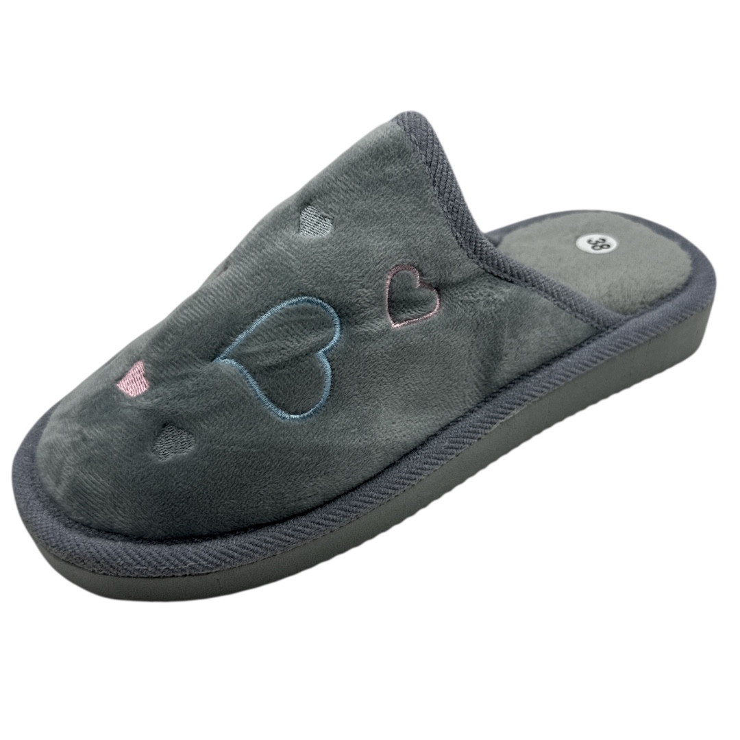 Esta zapatilla de casa para señora está confeccionada con un delicado material de pelito, suave al tacto y muy agradable para el uso diario. Su diseño destaca por el encantador bordado de corazones , que aporta un toque dulce, moderno y femenino.