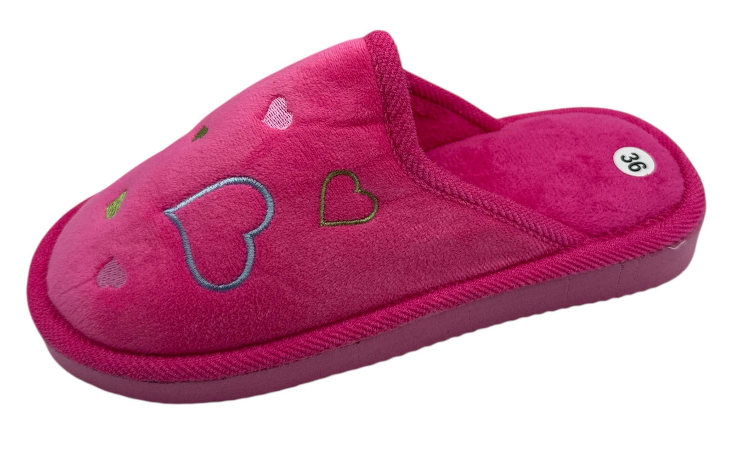 Esta zapatilla de casa para señora está confeccionada con un delicado material de pelito, suave al tacto y muy agradable para el uso diario. Su diseño destaca por el encantador bordado de corazones , que aporta un toque dulce, moderno y femenino.
