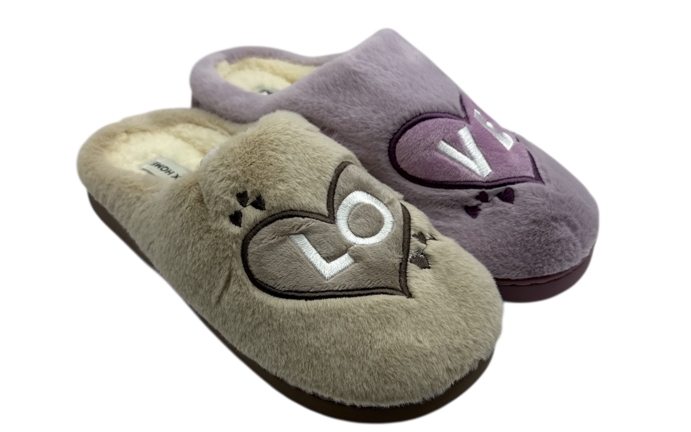 Zapatilla de casa de señora de pelito con bordado “LOVE y CORAZON .