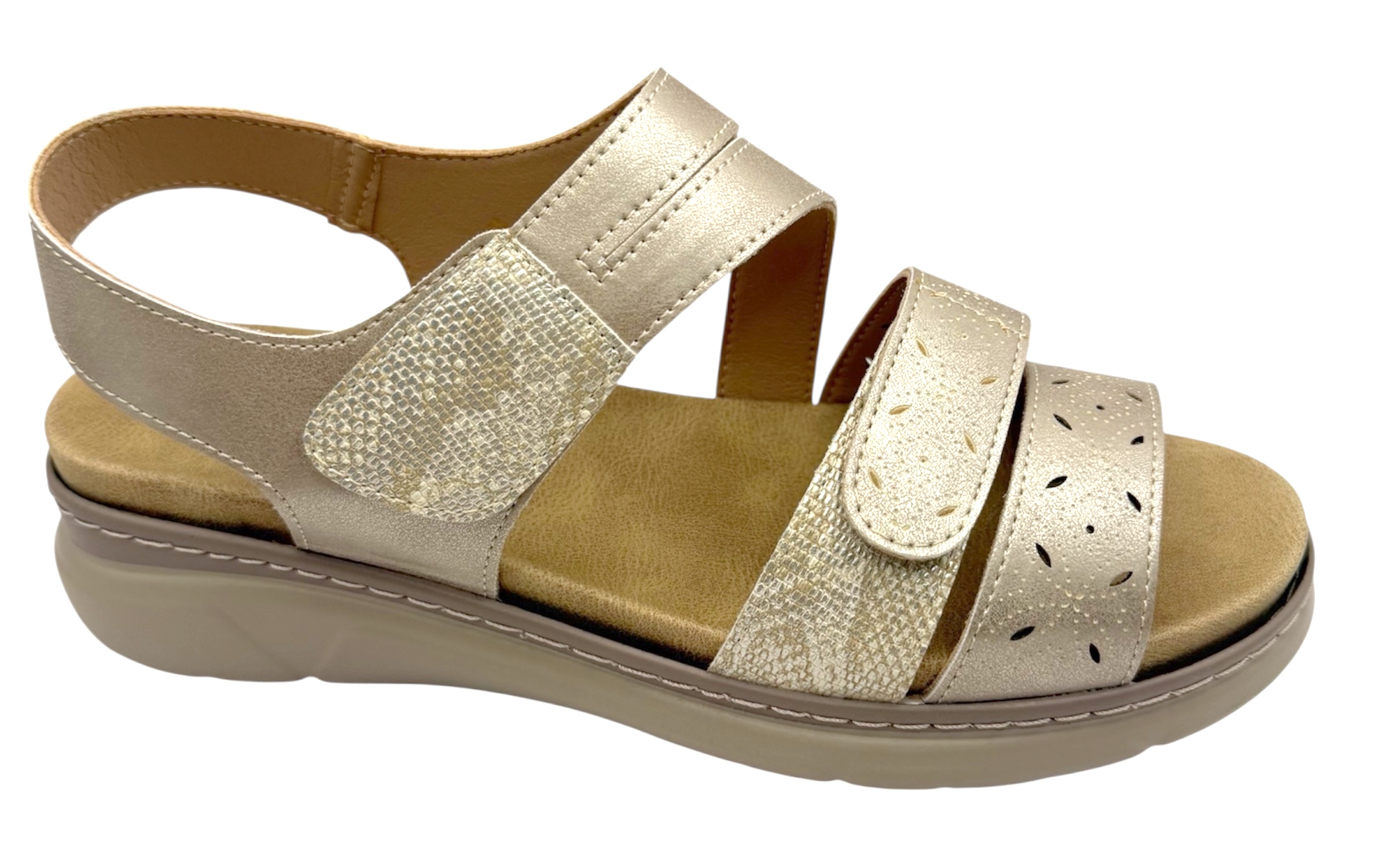 Esta sandalia de mujer de la marca Ballery es la combinación perfecta de ergonomía y diseño práctico para el día a día. Fabricada con una horma de ancho especial, está pensada para ofrecer un alivio inmediato a los pies que necesitan espacio y suavidad, evitando cualquier tipo de rozadura. Su estructura en piel beig presenta un elegante diseño de tres tiras, donde la pala delantera destaca por su delicado picado ornamental que mejora la ventilación.