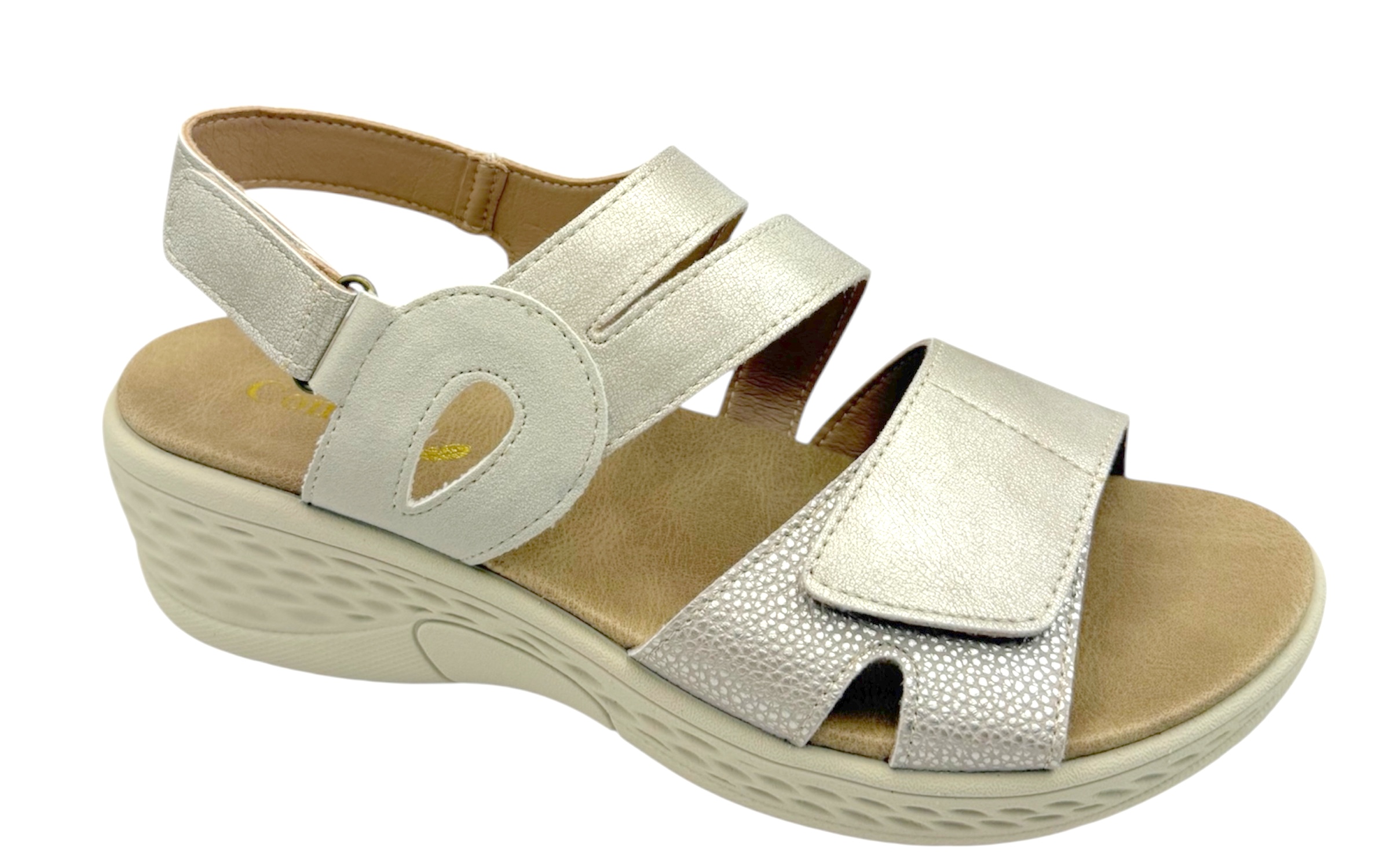 Esta sandalia de mujer de la marca Ballery es la solución definitiva para quienes priorizan el bienestar sin renunciar a la practicidad. Diseñada con una horma ancha y cómoda, ofrece el espacio necesario para evitar cualquier presión molesta en pies delicados. Su estructura cuenta con bandas de velcro en el empeine que permiten una apertura total, facilitando enormemente el calce y garantizando un ajuste milimétrico.El modelo destaca por su cuñita muy ligera, diseñada para proporcionar una elevación anatómica ideal que favorece la postura sin añadir peso innecesario al caminar. Esta suela de goma es totalmente antideslizante, lo que asegura una pisada estable y segura en todo momento. Además, incorpora un elástico adaptable que acompaña el movimiento natural del pie y una plantilla extraíble de gran calidad, perfecta para ser sustituida por plantillas ortopédicas personalizadas si fuera necesario.