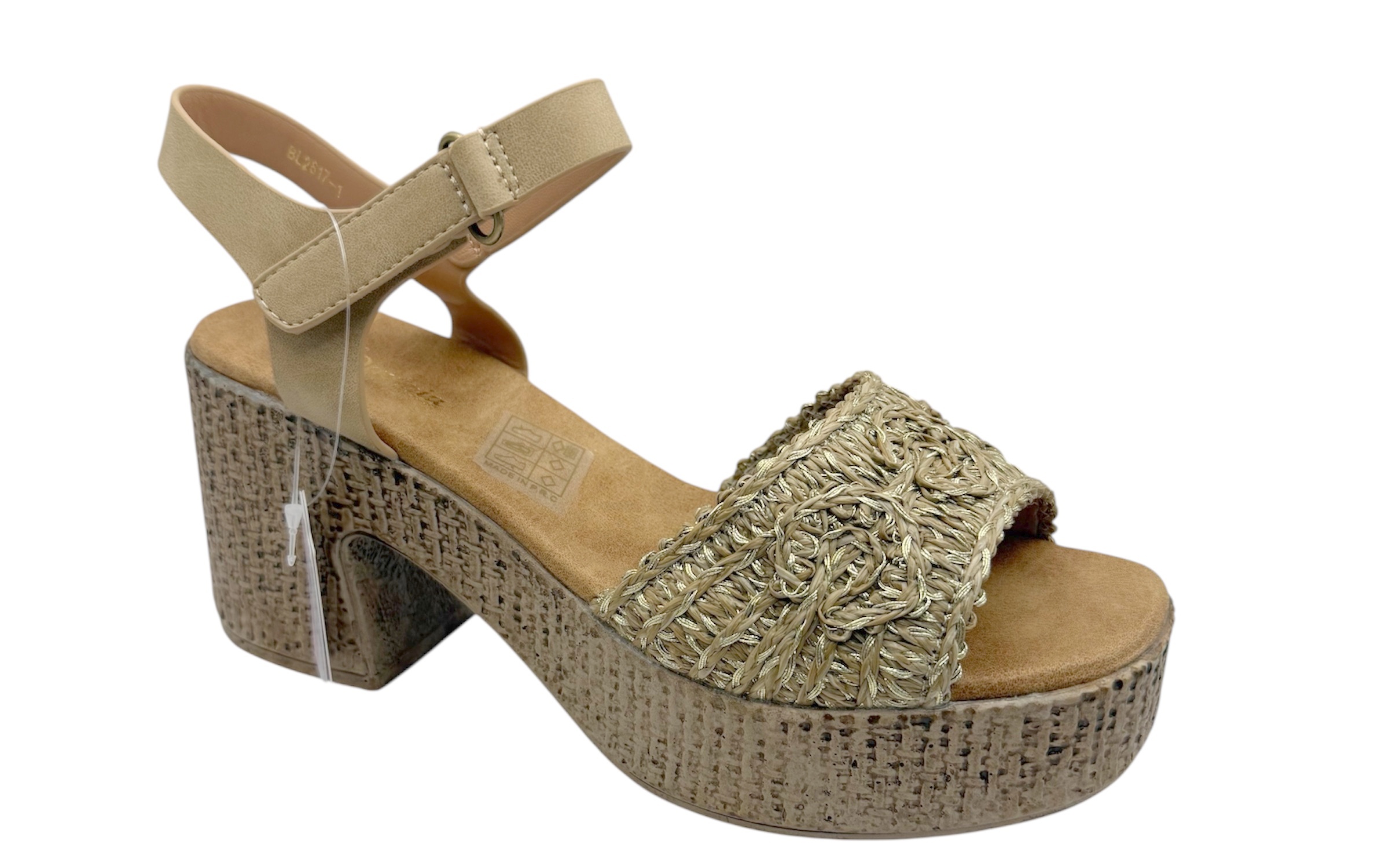 Este producto de la marca Ballery representa la combinación ideal entre estilo actual y ergonomía, presentándose como una sandalia juvenil que no puede faltar en la temporada estival. Su diseño en color beige destaca por una pala ancha confeccionada en yute trenzado con relieves circulares, que aporta un toque artesanal y sofisticado. La estructura se apoya sobre un tacón alto y una generosa plataforma que, gracias a su acabado en imitación corcho y tejido rústico, ofrece una estética orgánica muy versátil. Para garantizar el máximo bienestar, incorpora una planta de gel acolchada que amortigua cada paso, convirtiéndola en una opción extremadamente cómoda para un uso prolongado. El sistema de cierre mediante hebilla velcro en la tira del tobillo permite un ajuste rápido y preciso, facilitando el calce diario. Es, en definitiva, una pieza elegante y robusta, fabricada por Ballery para quienes buscan elevar su estatura con total seguridad y tendencia.