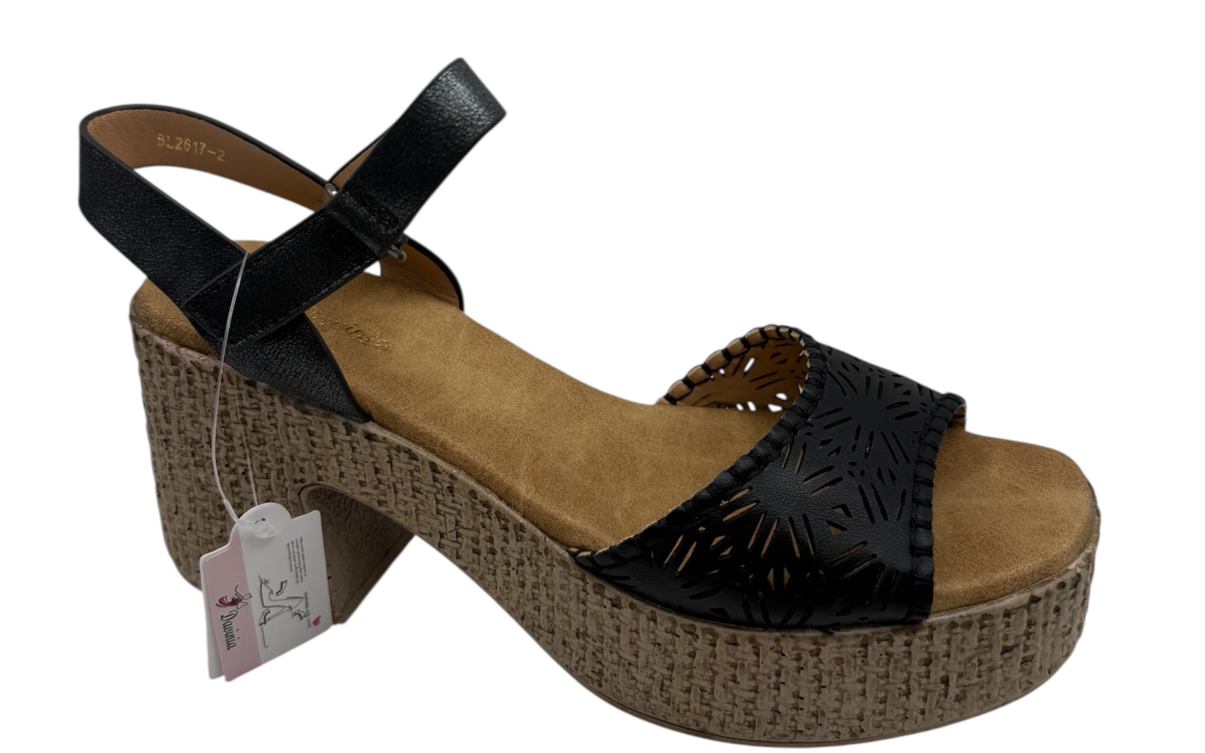 Este producto de la marca Ballery representa la combinación ideal entre estilo actual y ergonomía, presentándose como una sandalia juvenil que no puede faltar en la temporada estival. Su diseño en color negro destaca por una pala ancha con motivos geométricos troquelados, que aporta un toque artesanal y sofisticado. La estructura se apoya sobre un tacón alto y una generosa plataforma que, gracias a su acabado en imitación corcho o trenzado natural, ofrece una estética orgánica muy versátil. Para garantizar el máximo bienestar, incorpora una planta de gel acolchada que amortigua cada paso, convirtiéndola en una opción extremadamente cómoda para un uso prolongado. El sistema de cierre mediante hebilla velcro permite un ajuste rápido y preciso al tobillo, facilitando el calce diario. Es, en definitiva, una pieza elegante y robusta, fabricada por Ballery para quienes buscan elevar su estatura con total seguridad y tendencia.