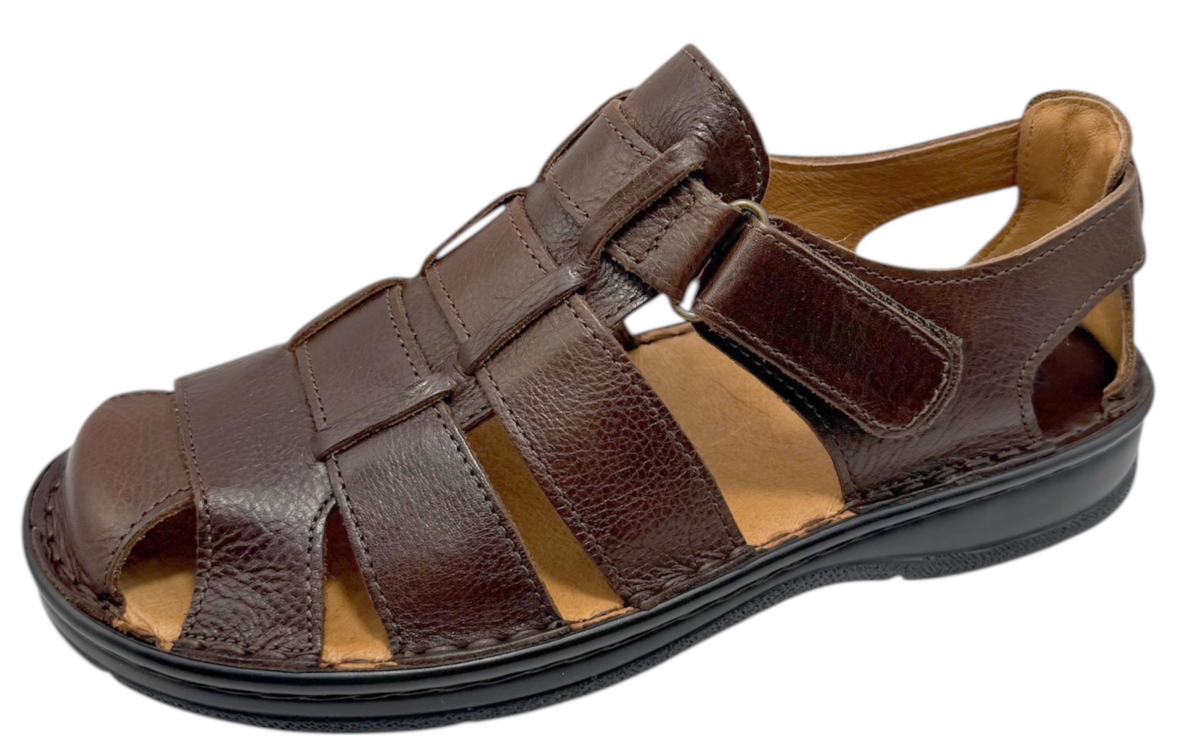Esta sandalia de caballero destaca por una confección íntegra en piel de primera calidad, ofreciendo una suavidad excepcional que se adapta de forma natural a la forma del pie. Su diseño clásico de estilo cangrejera combina elegancia y funcionalidad, proporcionando una ventilación óptima sin renunciar a la protección necesaria. El interior cuenta con una planta extremadamente cómoda, diseñada con un acolchado especial que garantiza una pisada suave y reduce la fatiga durante todo el día.La base del calzado es su piso de poliuretano de última generación, un material que destaca por ser increíblemente ligero, logrando que el zapato prácticamente no pese. Esta suela no solo aporta una flexibilidad superior que acompaña el movimiento natural al caminar, sino que también ofrece propiedades antideslizantes para asegurar un agarre firme en diversas superficies, evitando resbalones. Es la elección ideal para quienes buscan un calzado duradero, fresco y de máximo bienestar para el uso diario.