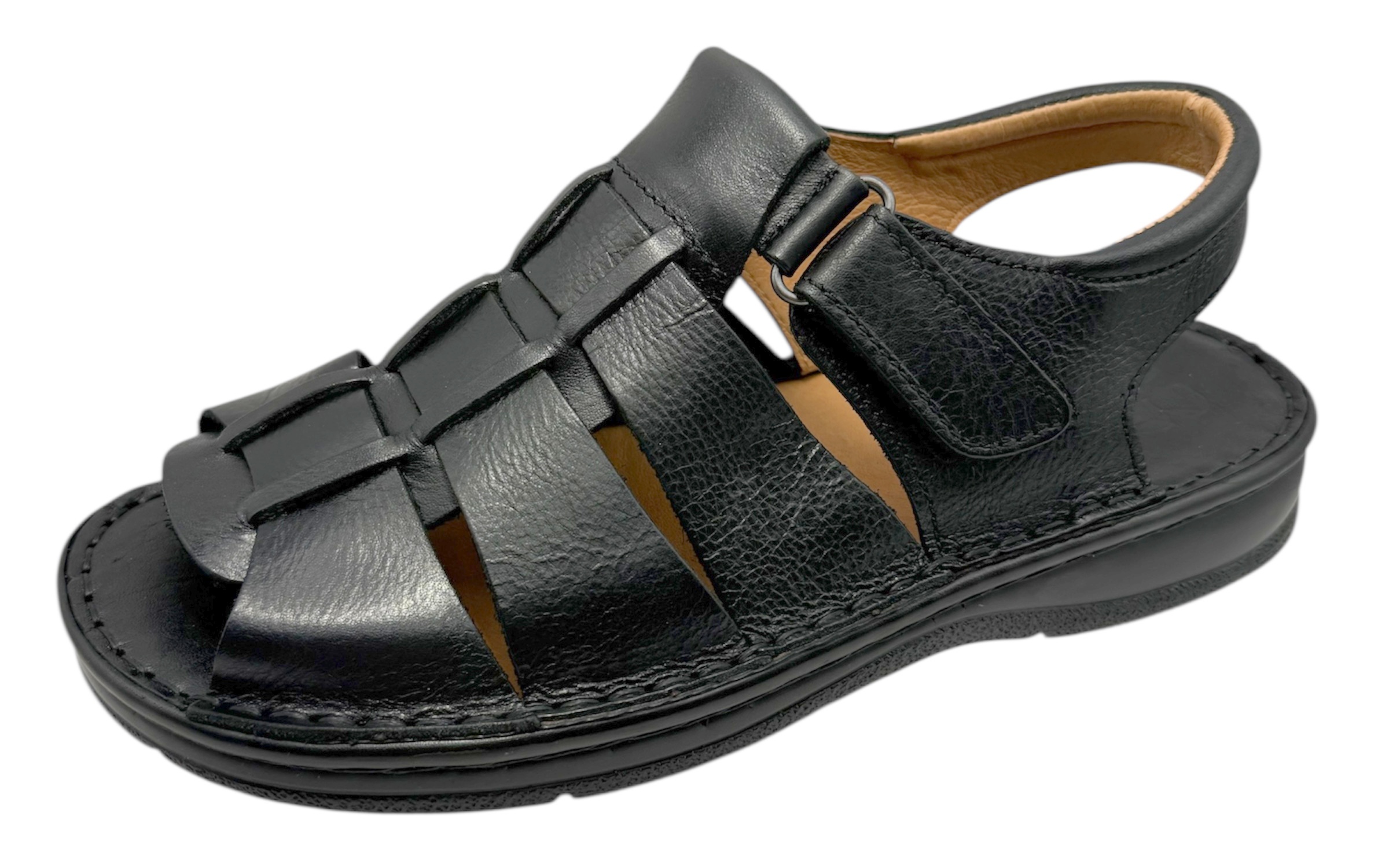 Esta sandalia de caballero destaca por una confección íntegra en piel de primera calidad, ofreciendo una suavidad excepcional que se adapta de forma natural a la forma del pie. Su diseño clásico de estilo cangrejera combina elegancia y funcionalidad, proporcionando una ventilación óptima sin renunciar a la protección necesaria. El interior cuenta con una planta extremadamente cómoda, diseñada con un acolchado especial que garantiza una pisada suave y reduce la fatiga durante todo el día.La base del calzado es su piso de poliuretano de última generación, un material que destaca por ser increíblemente ligero, logrando que el zapato prácticamente no pese. Esta suela no solo aporta una flexibilidad superior que acompaña el movimiento natural al caminar, sino que también ofrece propiedades antideslizantes para asegurar un agarre firme en diversas superficies, evitando resbalones. Es la elección ideal para quienes buscan un calzado duradero, fresco y de máximo bienestar para el uso diario.