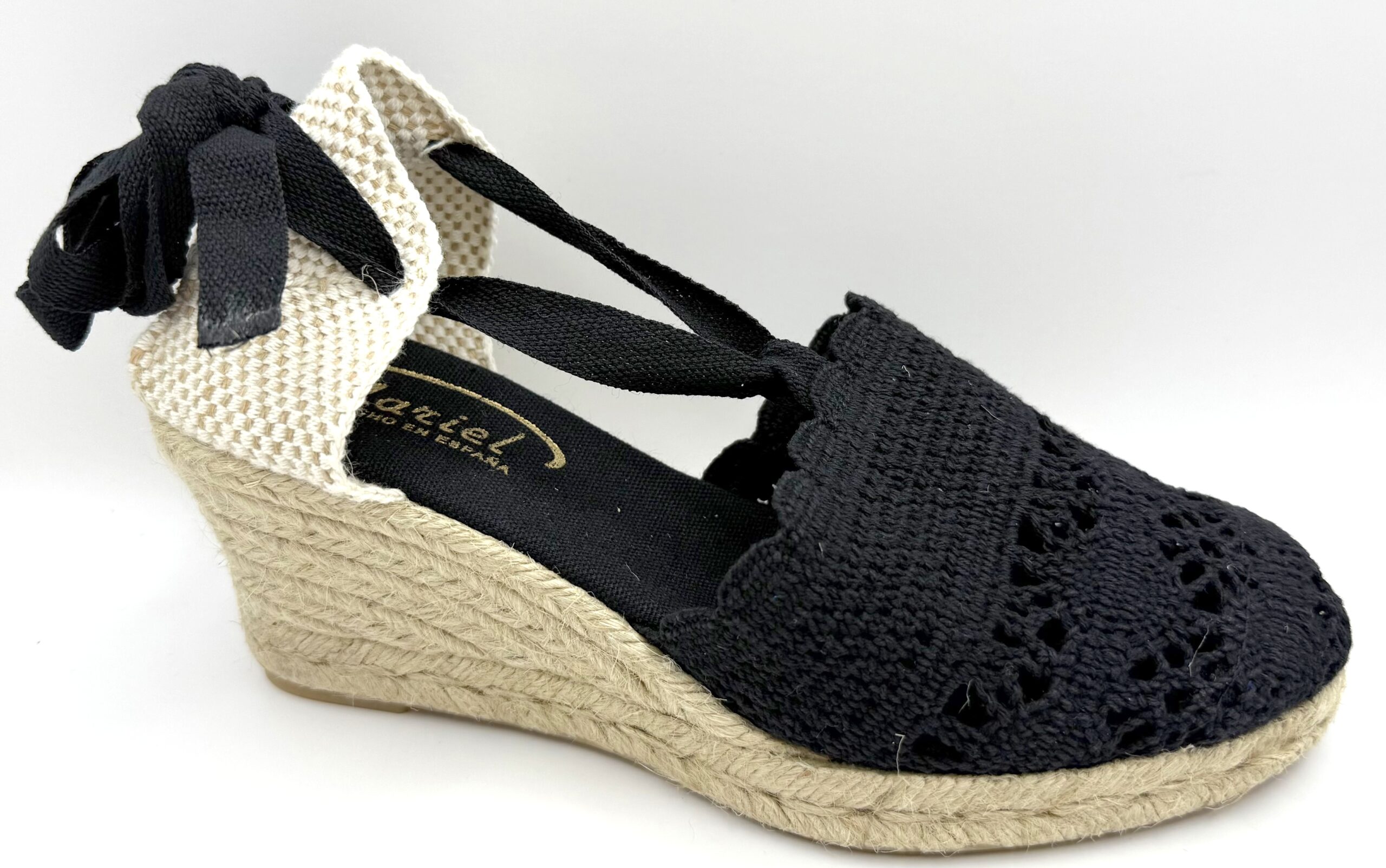 Esta zapatilla española de la marca Mariel representa la elegancia artesanal del calzado tradicional, combinando diseño, comodidad y materiales naturales. Se trata de un producto fabricado en España que destaca por su confección cuidada y su estilo atemporal, ideal para quienes buscan un zapato con identidad y un toque distintivo. El modelo está elaborado con encaje negro en la parte delantera, que le aporta un aire femenino y fresco gracias a sus detalles calados. Este tejido no solo es decorativo, sino también ligero y transpirable, perfecto para los meses cálidos del año.