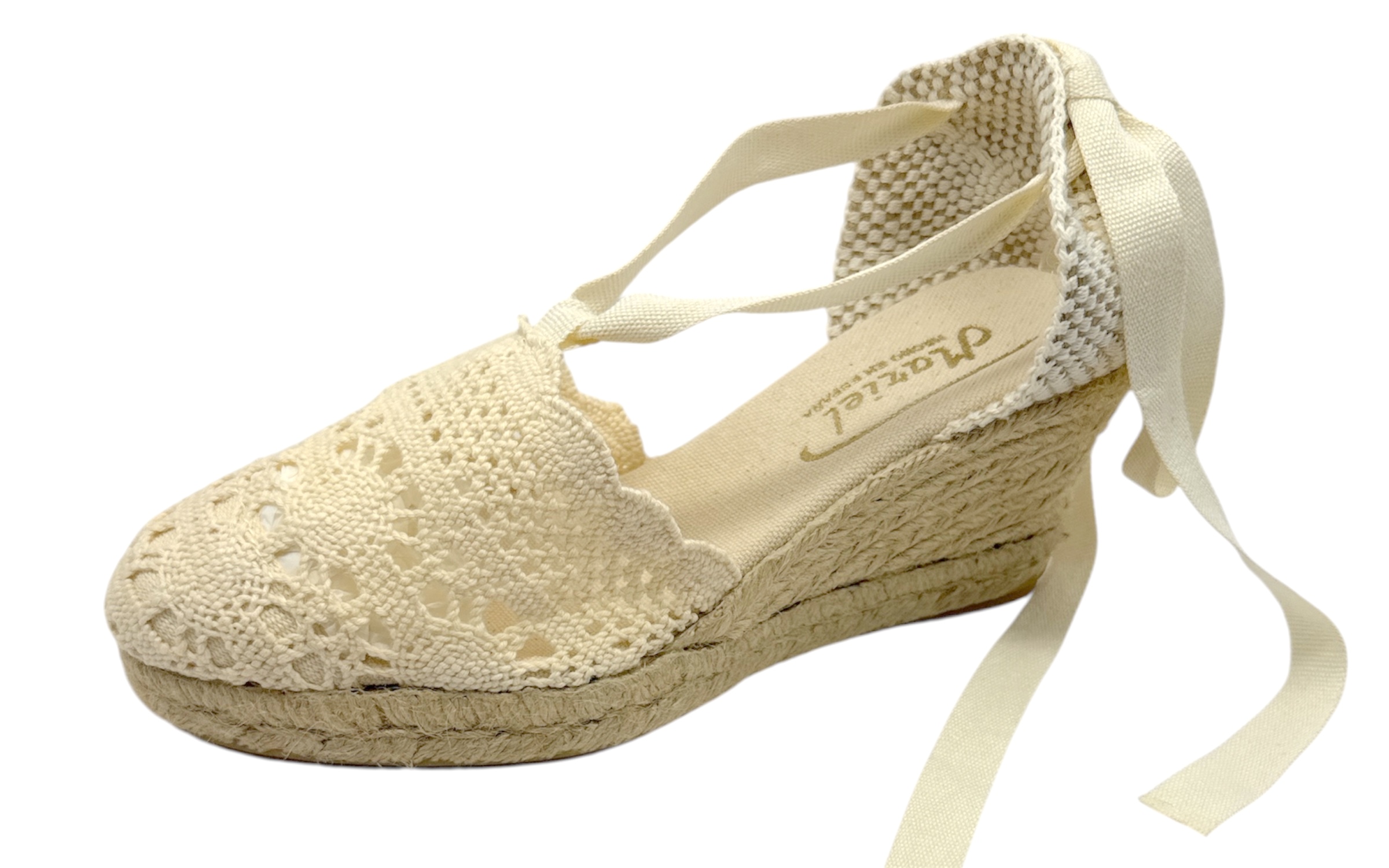 Esta alpargata de cuña de la firma Mariel, fabricada íntegramente en España, destaca por su elegante combinación de texturas y su diseño artesanal. El modelo presenta una sofisticada pala confeccionada en encaje de algodón negro, que aporta un aire romántico y una excelente transpirabilidad para los días más calurosos.La cuña está compuesta por 6 cuerdas de cáñamo natural trenzado, proporcionando una altura estilizada sin comprometer la comodidad. Para asegurar el máximo confort, incorpora una planta de gel de algodón, diseñada para amortiguar la pisada y ofrecer una sensación de frescura y suavidad continua al caminar.El diseño se completa con un talón de tejido calado en contraste y un cierre clásico mediante cintas de algodón que se anudan al tobillo, garantizando una sujeción perfecta y un estilo femenino atemporal. Es el calzado ideal para quienes buscan calidad, diseño artesano y una comodidad técnica superior en una sola pieza.