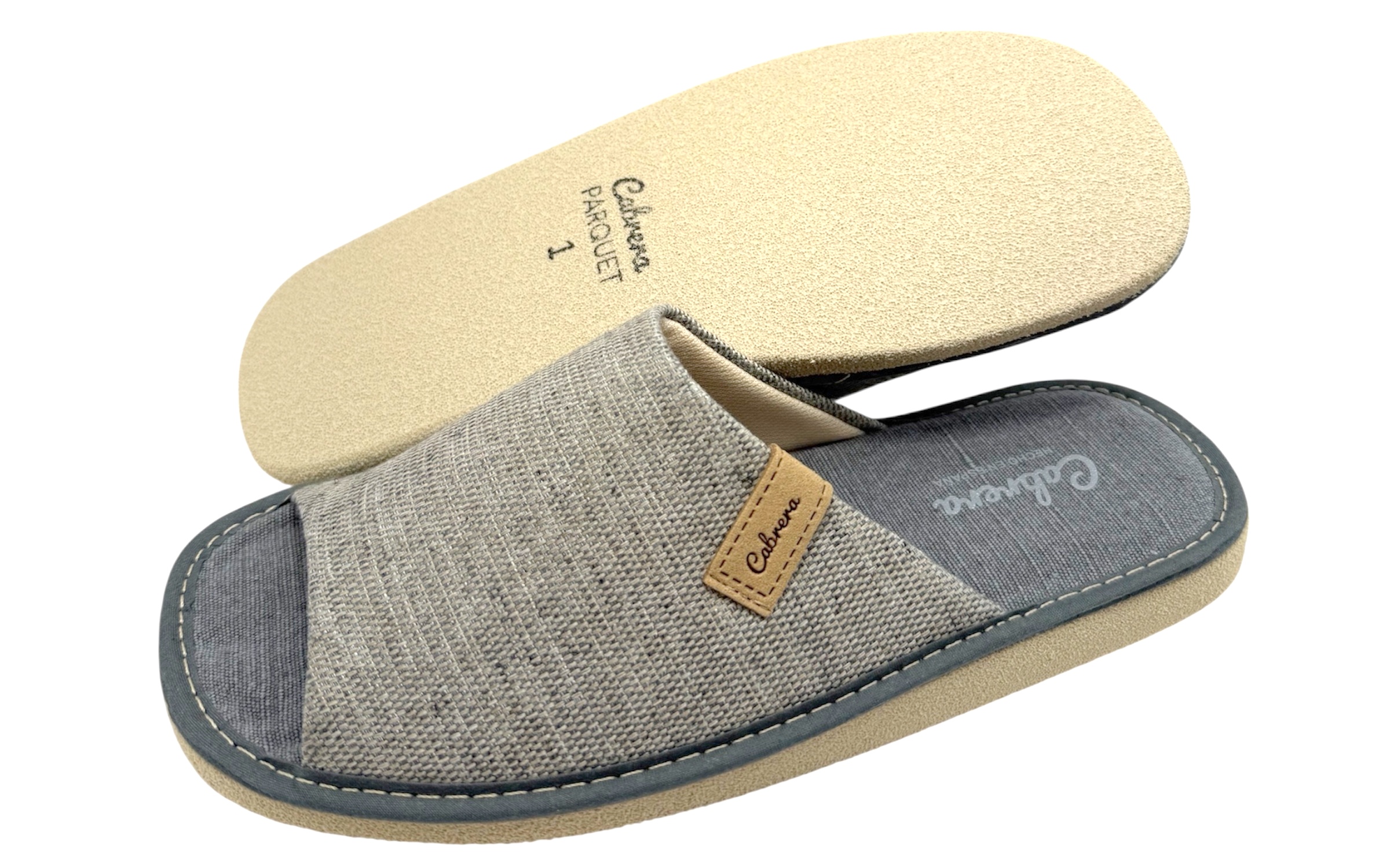 Esta zapatilla de casa para caballero es un producto de excepcional calidad, diseñado específicamente para quienes buscan el máximo cuidado de sus suelos de madera. Fabricada íntegramente en España por Vulcanizados Cabrera, este producto destaca por su suela especial para parquet, confeccionada en una microfibra de alta densidad que evita rayaduras y ruidos, permitiendo un deslizamiento suave y silencioso.El diseño de este producto es sumamente elegante, utilizando un tejido de loneta en tonos grises con una textura jaspeada de primera categoría. Su estructura de chinela abierta por delante asegura una ventilación óptima, ideal para mantener el pie fresco en cualquier época del año. Un detalle distintivo es que este producto no pesa absolutamente nada; su ligereza extrema reduce la fatiga al caminar, ofreciendo una sensación de libertad incomparable. Con acabados impecables y materiales de primera, es el calzado doméstico perfecto para combinar distinción y protección total del hogar.