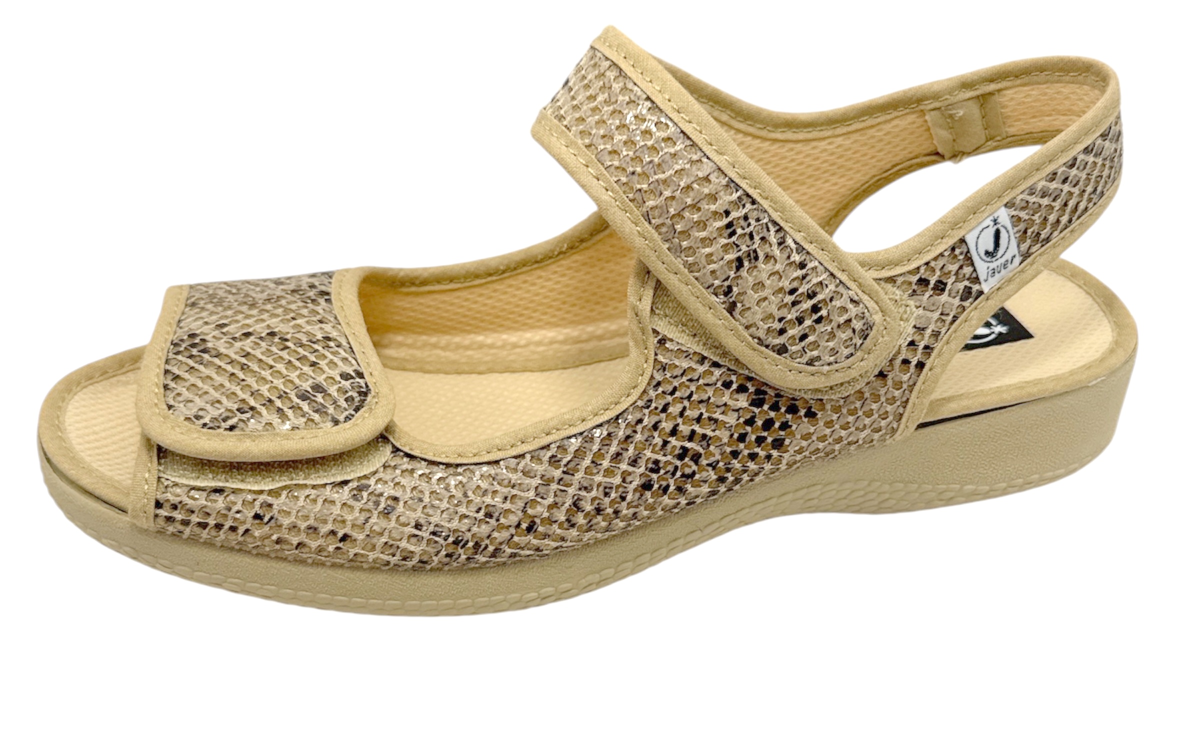 Esta sandalia de la reconocida marca Javer, fabricada íntegramente en España, representa la combinación ideal entre funcionalidad y estilo para el descanso del pie. El diseño destaca por un elegante acabado con grabado de serpiente en tonos marinos, que aporta un toque sofisticado a un calzado pensado para el uso diario.