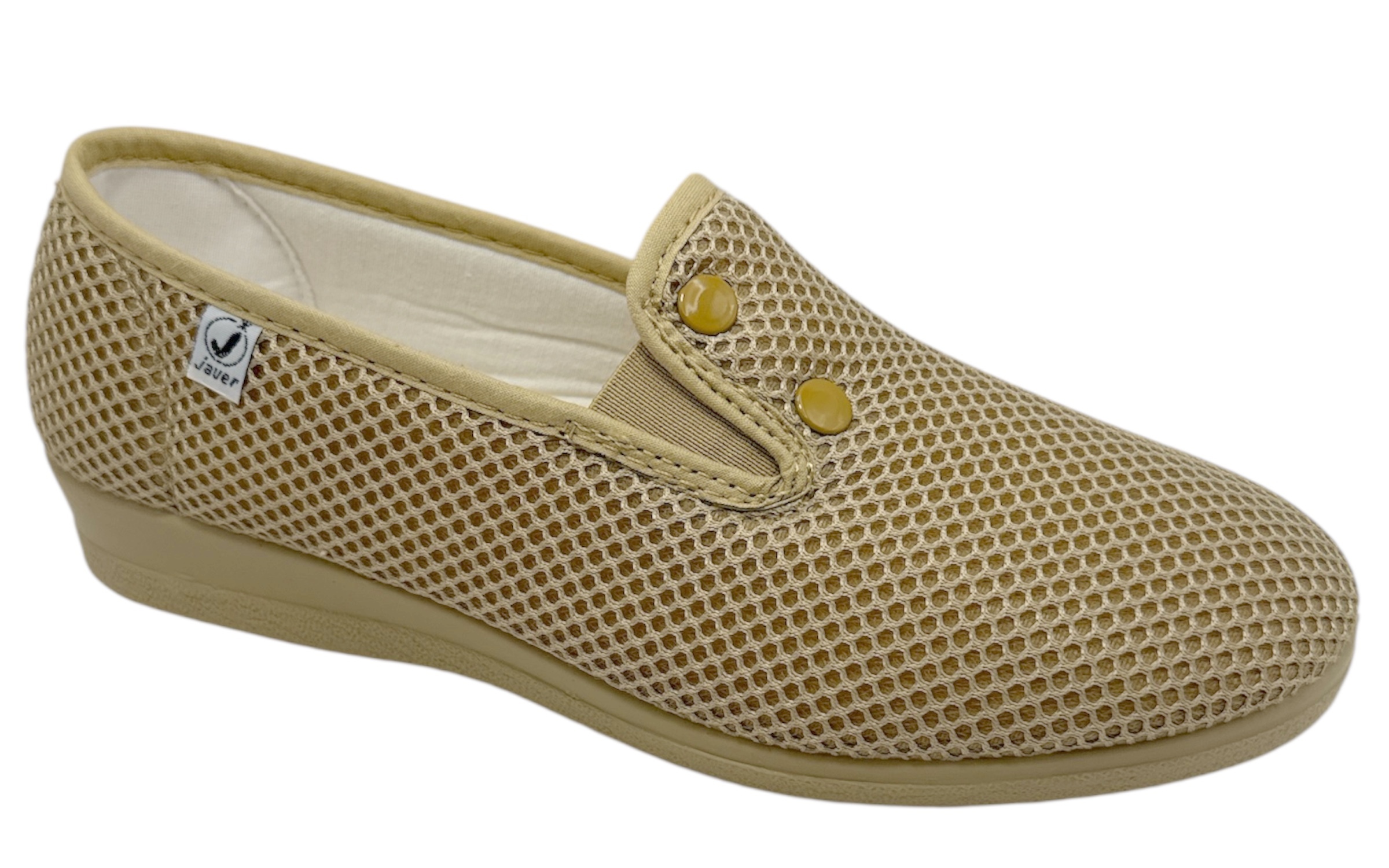 Esta zapatilla de la prestigiosa marca Javer, fabricada íntegramente en España, es la elección perfecta para quienes buscan un calzado de descanso que combine higiene y comodidad absoluta. Su diseño está confeccionado en una rejilla técnica de alta transpirabilidad en color negro, lo que permite una circulación de aire constante, manteniendo el pie fresco y seco durante todo el día.El modelo destaca por su practicidad extrema gracias a la incorporación de elásticos laterales en el empeine. Este sistema permite que la zapatilla se adapte suavemente a la forma del pie sin oprimir, facilitando un calce rápido y cómodo, ideal para personas con pies delicados o que requieren autonomía al calzarse.Para garantizar el bienestar postural, incluye una cuñita de goma que ofrece la elevación necesaria para evitar la fatiga en la espalda. Su suela es totalmente antideslizante, proporcionando seguridad y estabilidad en cada pisada. Es un calzado ligero, flexible y de gran durabilidad.