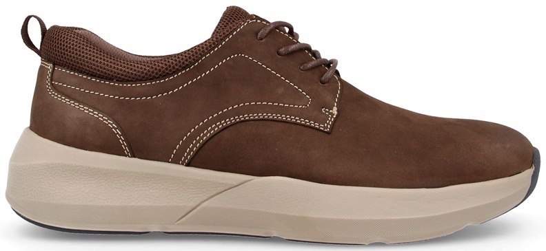 Este zapato deportivo de la reconocida marca Paredes está confeccionado en piel de alta calidad, ofreciendo un equilibrio perfecto entre resistencia, confort y estilo. Su diseño en color marrón oscuro con acabado nobuck transmite una sensación de elegancia discreta, ideal para quienes buscan un calzado versátil que combine tanto con looks casuales como con un estilo más cuidado. Las costuras visibles en contraste beige realzan las líneas del zapato, aportando un toque artesanal y reforzando las zonas clave para mayor durabilidad.