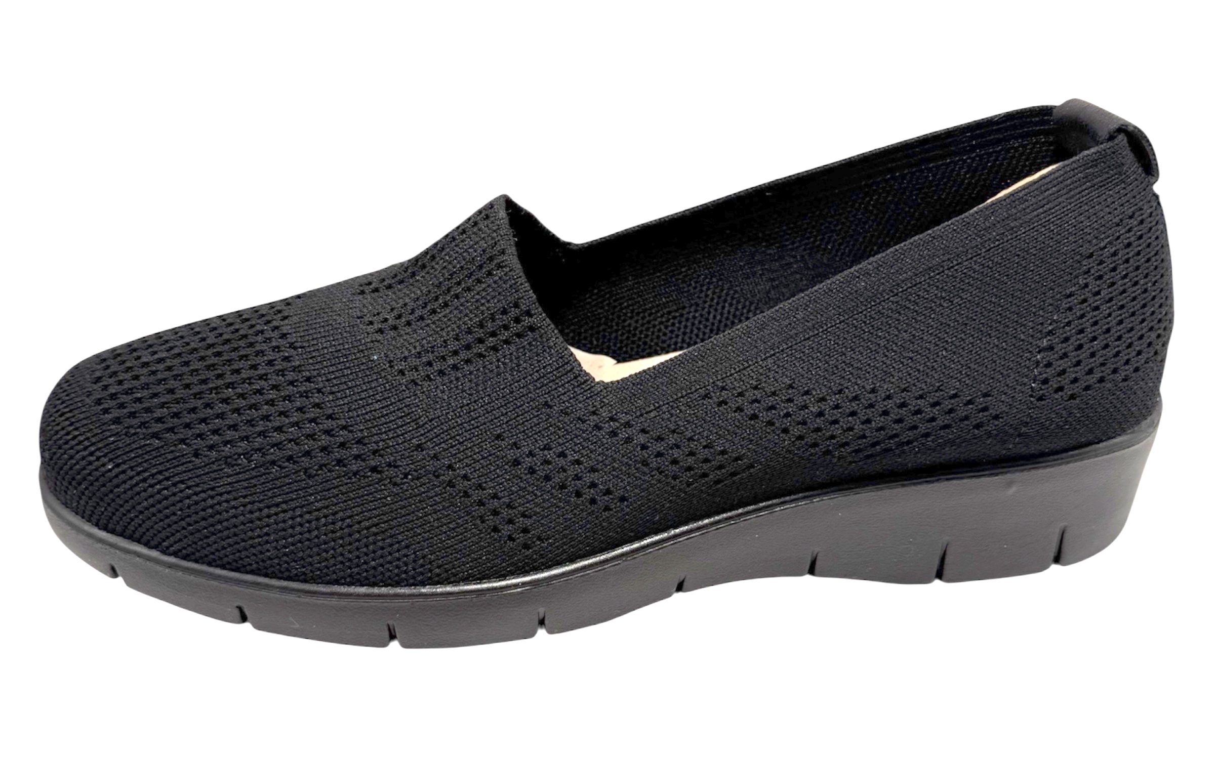 Este versátil producto es un zapato de estilo mocasín deportivo que redefine el concepto de confort cotidiano. Su diseño exterior está confeccionado en una avanzada rejilla de tejido elástico, que se adapta como un guante a la forma del pie, eliminando puntos de presión y garantizando una transpirabilidad total. La ausencia de cierres permite un calce rápido y sencillo, ideal para un ritmo de vida dinámico.En su interior, incorpora una planta gel de última generación que ofrece una amortiguación excepcional, transformando cada pisada en una sensación de ligereza absoluta. La estructura se apoya sobre una cuñita de altura anatómica, diseñada para proporcionar un soporte óptimo a la columna y evitar el cansancio en piernas y pies. Su suela de goma flexible y antideslizante asegura una tracción fiable en cualquier superficie. Es el calzado de vestir casual perfecto para quienes buscan la máxima ergonomía sin renunciar a una estética limpia y minimalista en color negro.