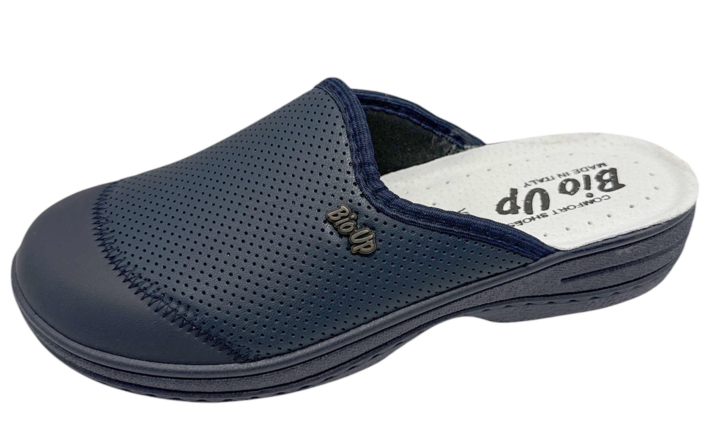 Zueco anatómico Team Shoes confeccionado en piel de alta calidad combinada con licra elástica, ofreciendo un ajuste flexible y cómodo que se adapta perfectamente al pie. Su diseño en color azul marino aporta un estilo sobrio y versátil, ideal tanto para el trabajo como para el uso diario. La pala perforada favorece la transpiración, manteniendo el pie fresco durante largas jornadas.