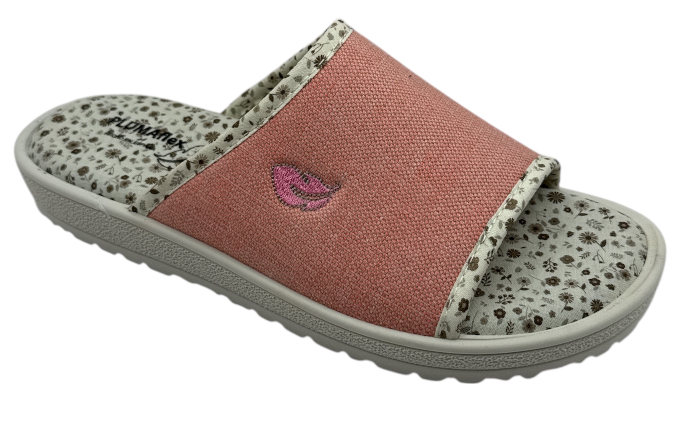 El acabado en tono rosa empolvado aporta un estilo suave y elegante, mientras que el delicado bordado decorativo en el empeine añade un detalle distintivo que realza su estética sin perder sobriedad. El interior, con un agradable estampado floral, contribuye a crear una sensación acogedora y hogareña, pensada para disfrutar de cada paso con comodidad y estabilidad.