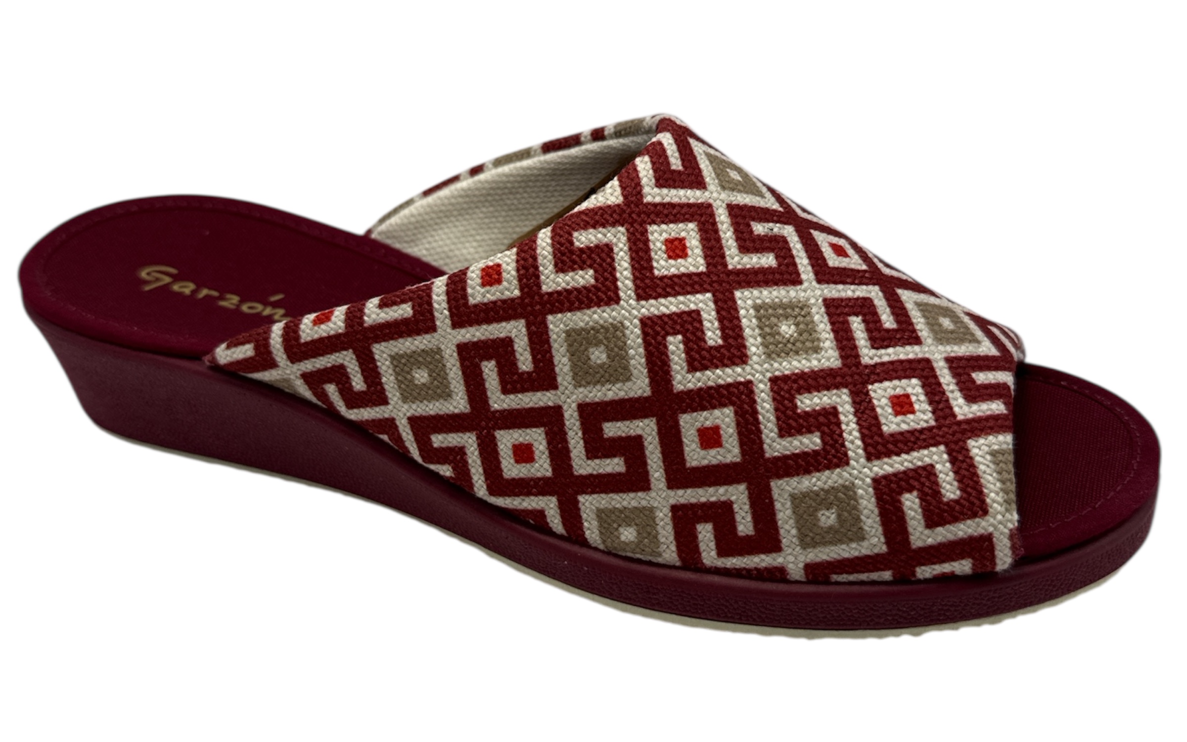Zapatilla de casa cómoda y funcional, pensada para ofrecer bienestar y seguridad en el uso diario dentro del hogar. Este modelo cuenta con punta abierta, ideal para una correcta ventilación del pie y una sensación fresca y agradable. Está confeccionada en tejido con dibujos geométricos, que aporta un diseño moderno, elegante y fácil de combinar. El interior es suave y confortable, proporcionando una agradable sensación en cada paso. Incorpora cuñita de goma que ayuda a mejorar la postura y aporta un extra de comodidad sin renunciar a la ligereza. Su suela de goma no resbala garantiza una pisada firme y segura sobre todo tipo de superficies, reduciendo el riesgo de deslizamientos. Es una zapatilla resistente, práctica y pensada para un uso continuado. Un modelo que une diseño, confort y funcionalidad, perfecto para el día a día en casa. Producto fabricado en España por Garzón, sinónimo de excelente calidad, garantía y tradición en calzado de hogar.